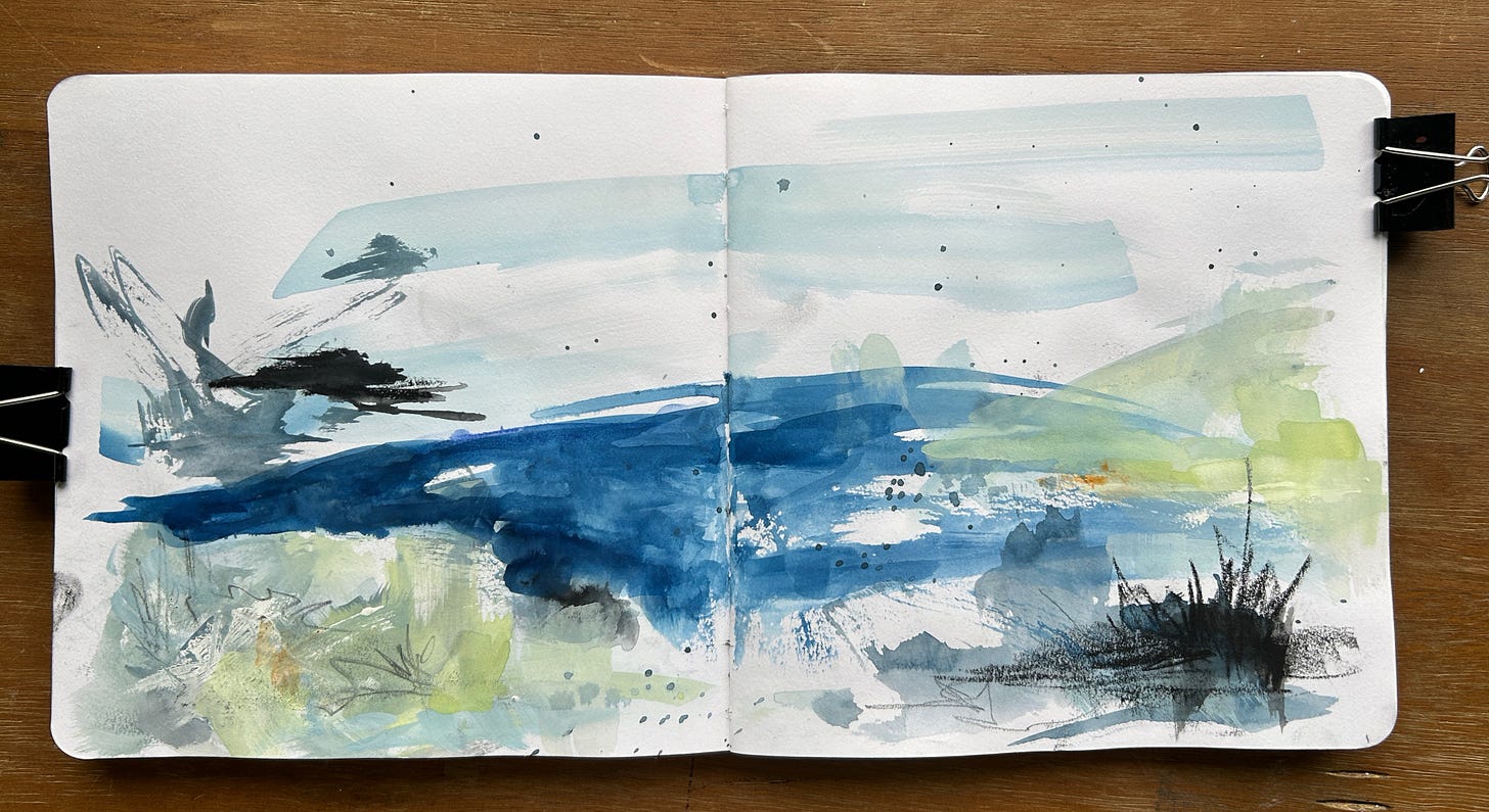 When we got back to the rental house, I took out my paints and imagined that I was still standing on my spot.